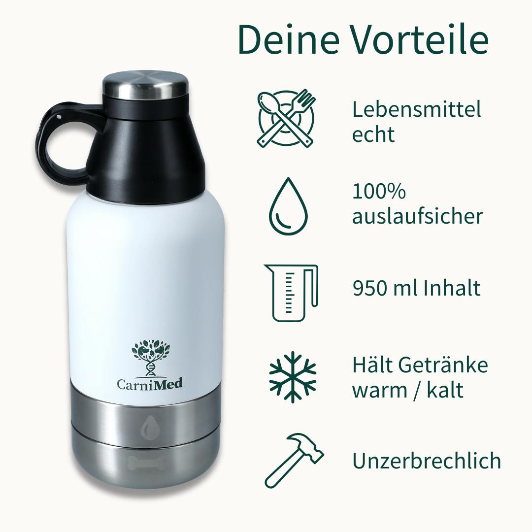 CarniMed Thermo-Trinkflasche – 4-in-1 Edelstahlflasche