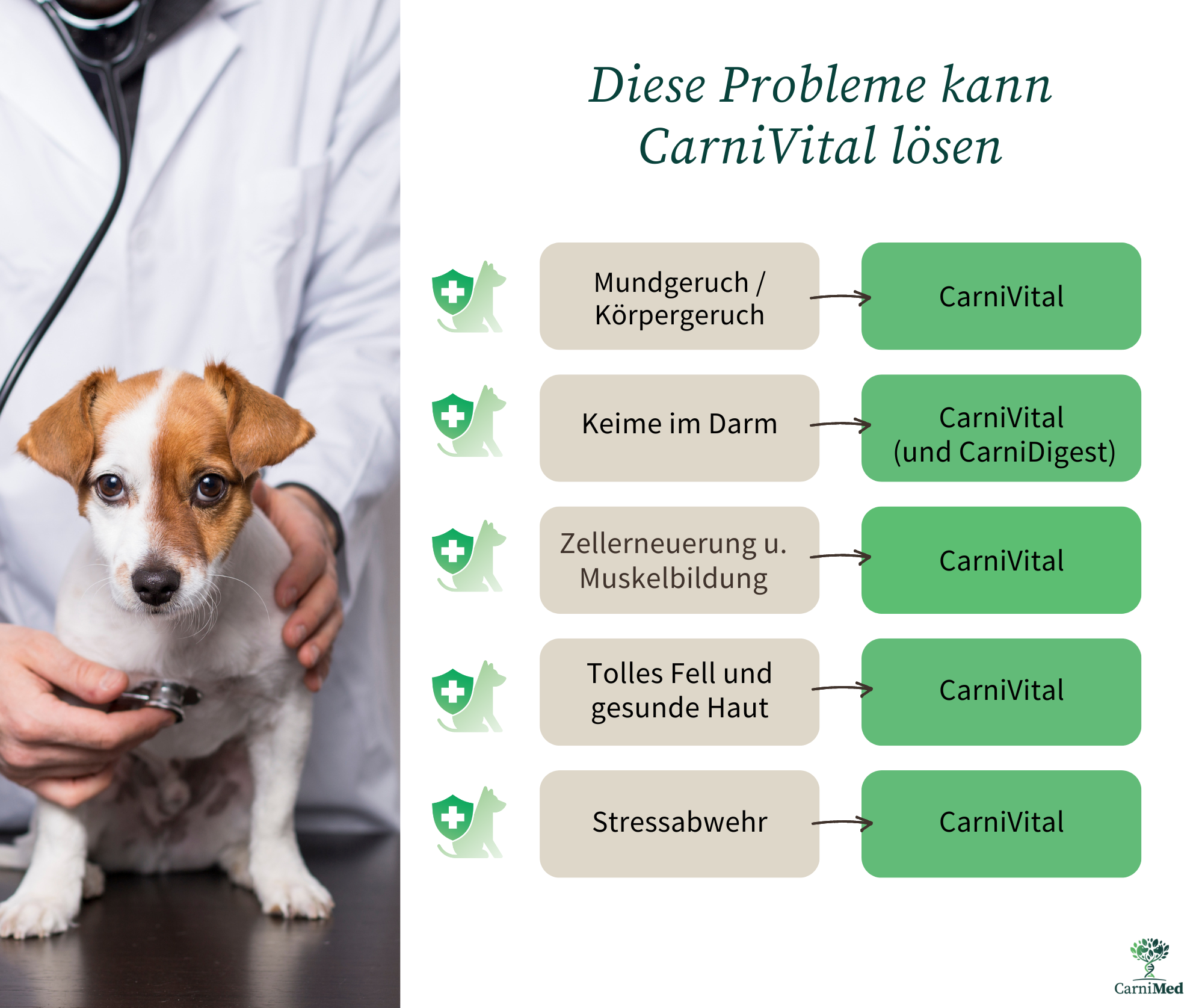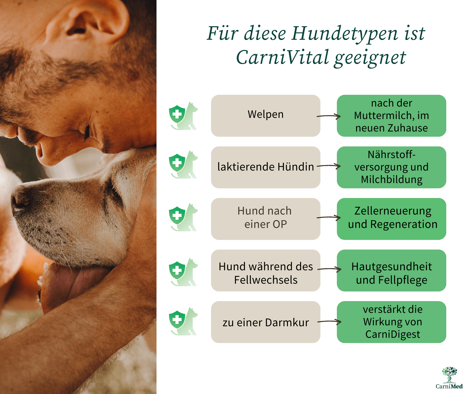 Mit CarniVital wählst Du für Deinen Hund eine ganzheitliche Nährstoffkombination, die vielseitig unterstützt: