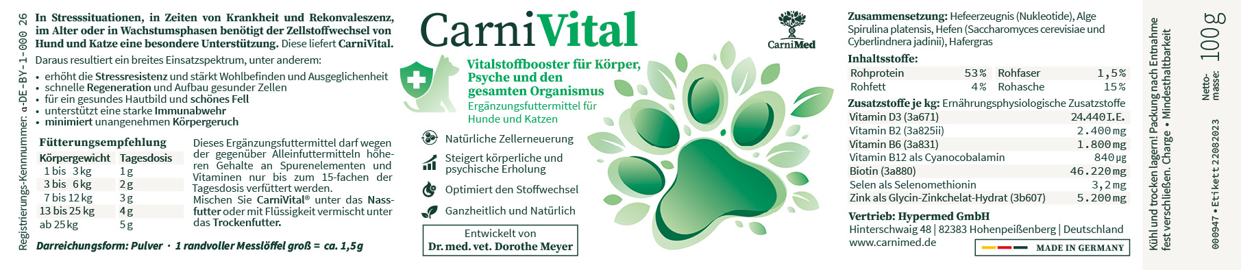 CarniVital als Ergänzungsfuttermittel schenkt: